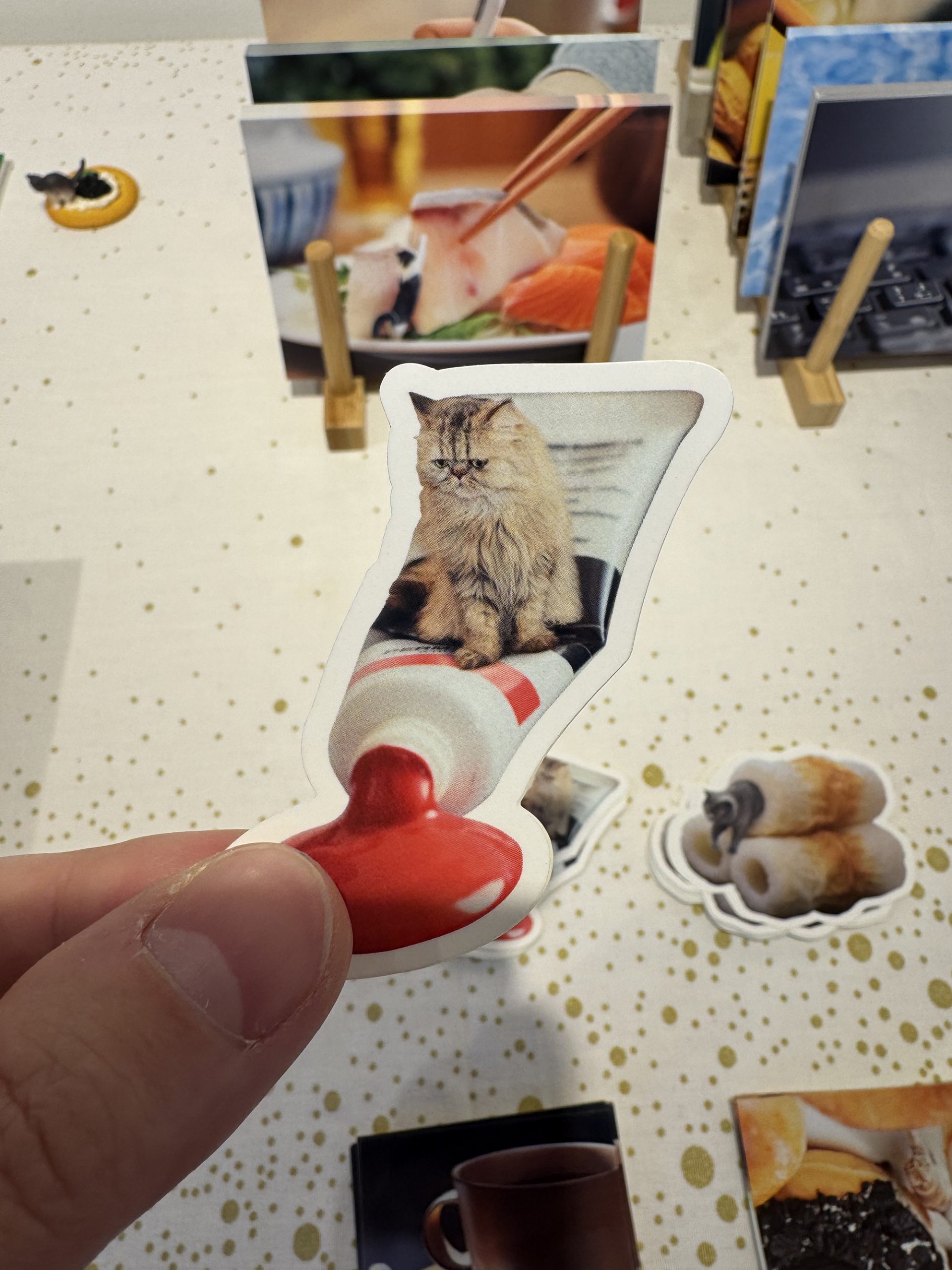 最初に猫を大量に撮影し、そのポーズにあうシチュエーション(背景)を考え背景を撮影するというなかなか大変な制作でした。